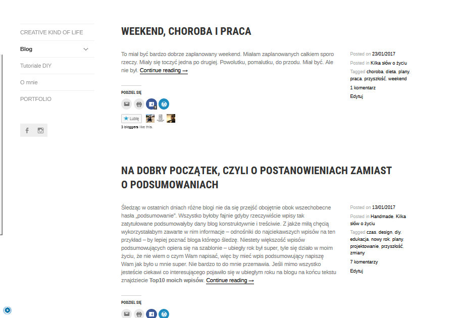 - Usystematyzowanie treści – zrobiłam nowy podział w menu na górze strony, ale chyba podejmę usystematyzowania tego gdyż obawiam się braku jasności przekazu.