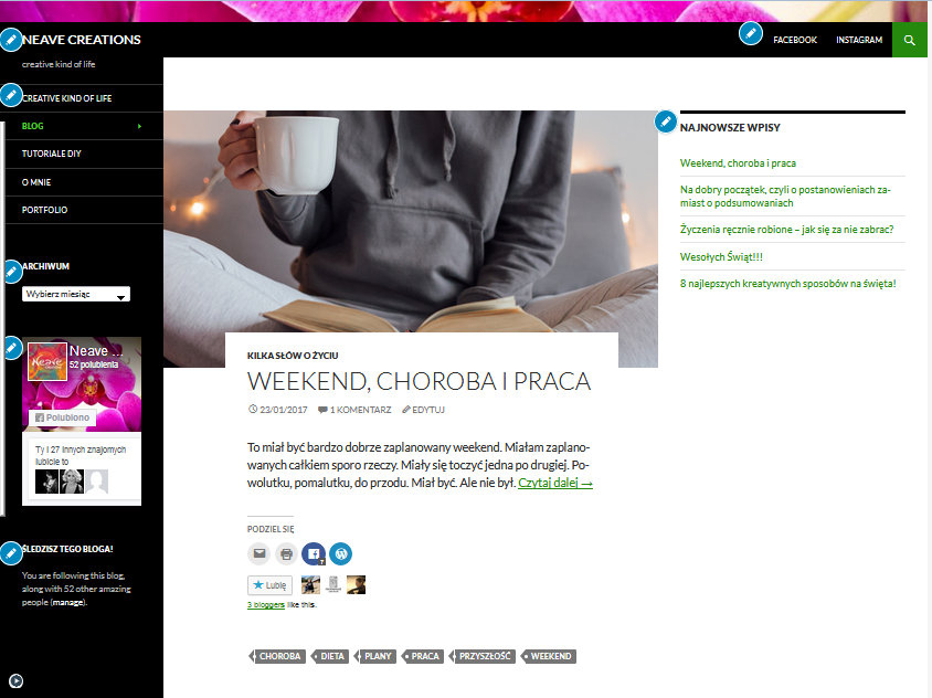 - Nowa domena – nadal nie wykupiona, choć w końcu doprecyzowałam jaka chcę domenę to jestem na rozstaju z uwagi na wybór najlepszej firmy do zakupu samej domeny. Hosting mam w home.pl, ale nie do końca jestem przekonana czy kolejna domenę brać również u nich – ceny ostatnio skaczą im w kosmos. Zwłaszcza przy przedłużaniu usług. Macie jakieś doświadczenia w tym zakresie?